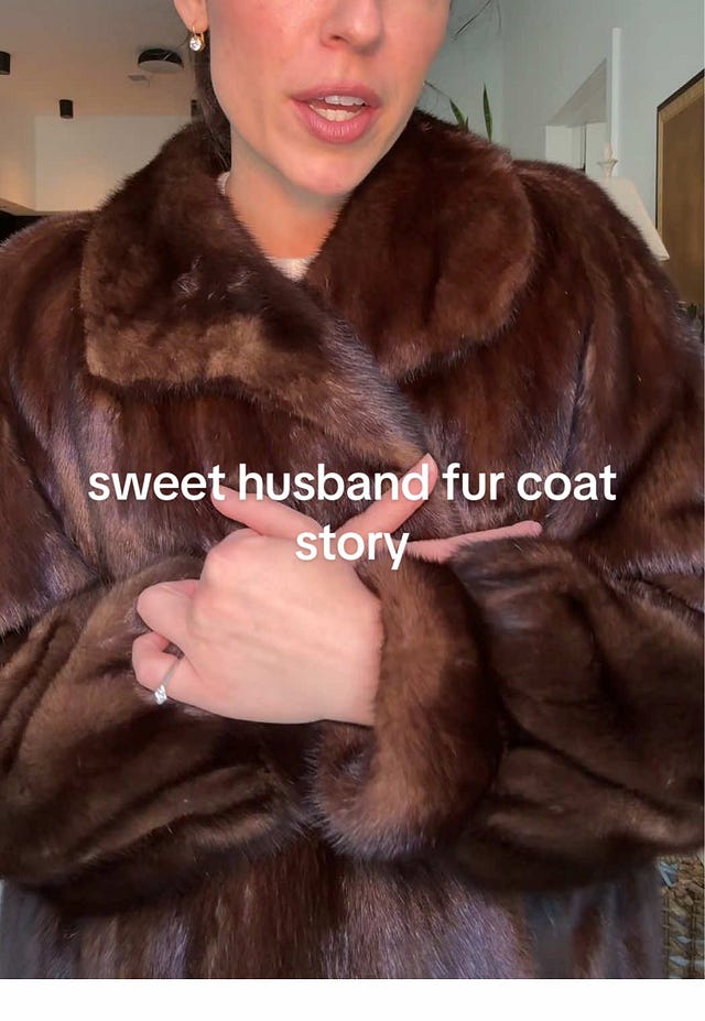 I wore a new and very special fur coat to my hair appointment. I initially found this jacket at a thrift store around the holidays. I LOVED it, it’s in perfect condition, and the volunteer who donated it told me it was his wife’s push present. It was such a sweet story. It was priced great for a fur, but still more than I wanted to spend, and I ended up not getting it. Chris pulled an iconic move and went and got it for me the next day as an anniversary present. I was so surprised and absolutely lost it when it told me he got it half off. Full story here:
