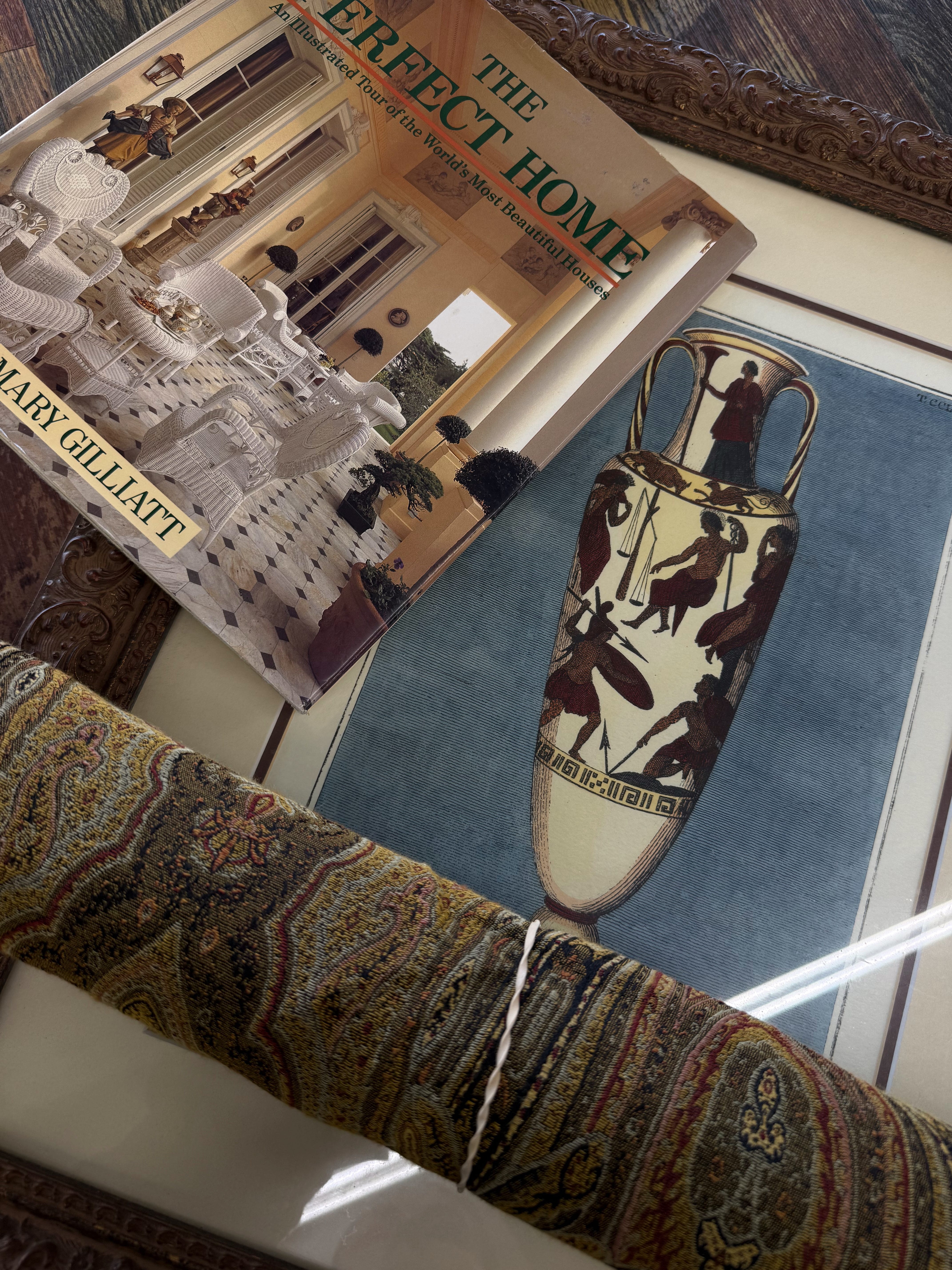We took home the above and two more pieces of art. What’s wild about these finds is that I wrote about old home design books and paisley patterns in my most recent Collage Shop post (posted last week), and then found almost identical items. Manifestation much? The interest in paisley started with a vintage Ralph Lauren skirt I tried on in upstate NY last spring and has only grown since. Now that we have the mirrors, my focus is on bedding, and I think this fabric ($10) will make a gorg bolster pillow. I ordered this duvet cover and sheet set - all 40% right now! I had an extra set of pillowcases embroidered, which is fun.